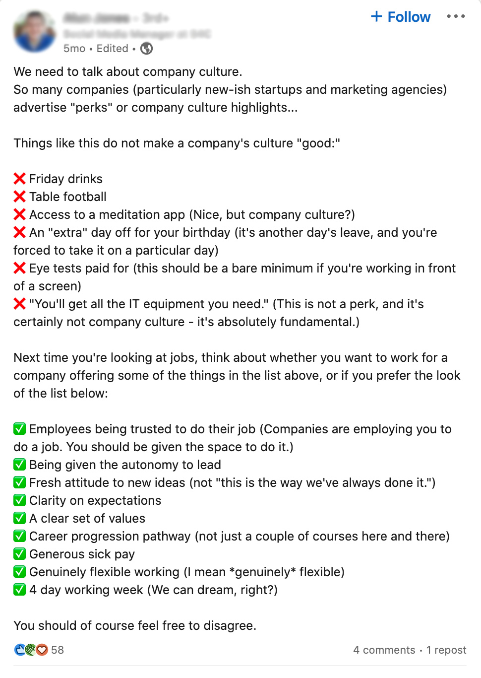 If you’re posting about a topic that is difficult to formulate your own response to, try asking questions that your connections might have responses to. Questions or neutral positions can often be easier than articulating a position on complex topics.