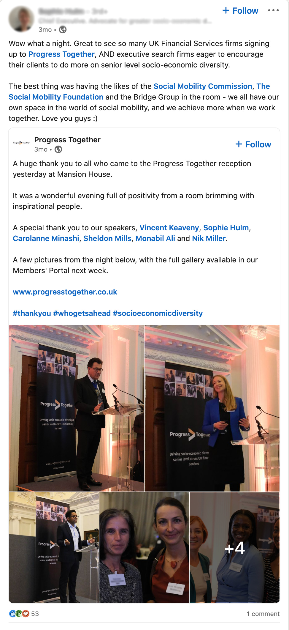 Where possible attaching an image, a photo or even a video can be a great way of making your post stand out in social media feeds. Adding a photo of yourself at an event, or a graphic from a report you’ve contributed to, can bring that little bit of extra interest for people when they’re deciding whether to click on your post or not.